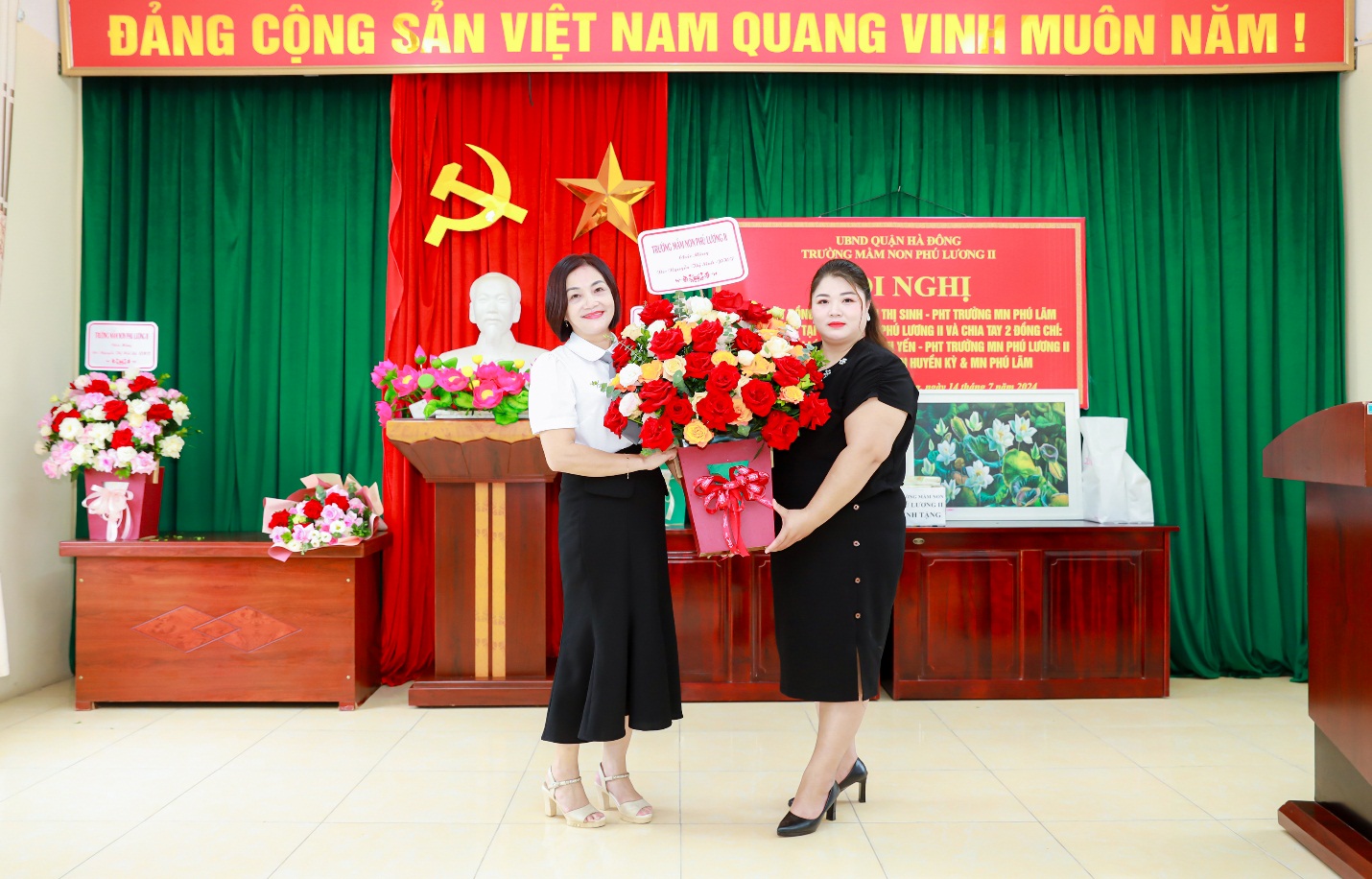Đối với 2 đồng chí Nguyễn Thị Yến, Nguyễn Thị Hải Lý đã có nhiều cống hiến cho sự nghiệp giáo dục của nhà trường nói riêng và của phường Phú Lương nói chung và để lại những kỷ niệm tốt đẹp không thể nào quên. 2 Đồng chí đã cùng với đ/c Hiệu trưởng và tập thể nhà trường tận tâm, tận tụy, đồng cam cộng khổ cùng với nhà trường thực hiện tốt thắng lợi nhiệm vụ qua các năm học, đưa thành tích của nhà trường ngày một đi lên và luôn hoàn thành tốt mọi nhiệm vụ vẻ vang của mình. Với những năm công tác tại trường Mầm non Phú Lương II, 02 đồng chí Nguyễn Thị Yến, Nguyễn Thị Hải Lý đã cùng với đ/c Hiệu trưởng, tập thể hội đồng sư phạm nhà trường lần lượt đưa nhà trường đạt nhiều thành tích đáng tự hào như tập thể lao động tiên tiến, trường đạt chuẩn quốc gia và nhiều thành tích khác. Đ/C Nguyễn Thị Yến là một cán bộ quản lý trẻ, kiêm phó bí thư chi bộ và Đ/C Nguyễn Thị Hải Lý là một cán bộ quản lý, kiêm Chủ tịch Công đoàn. 02 đồng chí đã gắn bó với ngôi trường mầm non Mầm non Phú Lương II trong suốt hơn 08 năm qua cùng chia sẻ những niềm vui, nỗi buồn, những tâm tư tình cảm đời thường và đã xây dựng được một đội ngũ giáo viên đoàn kết, yêu nghề, nhiệt tình trong công việc. Đối với giáo viên 02 đồng chí luôn quan tâm, giúp đỡ và tạo điều kiện để đội ngũ giáo viên hoàn thành tốt nhiệm vụ. Bản thân 02 đồng chí đã có nhiều thành tích trong công tác quản lý cũng như trong hoạt động của Chi bộ và Công đoàn. 02 đ/c nhận được nhiều giấy khen do các cấp trao tặng. Với rất nhiều thành tích và công lao với những cống hiến của 02 đồng chí, trong khoảng thời gian ngắn ngủi không thể kể hết nhưng đối với tập thể đội ngũ giáo viên, nhân viên trong nhà trường 02 đồng chí luôn là một tấm gương để Chị, em chúng tôi học hỏi và noi theo. Chị, em chúng tôi luôn trân quý.