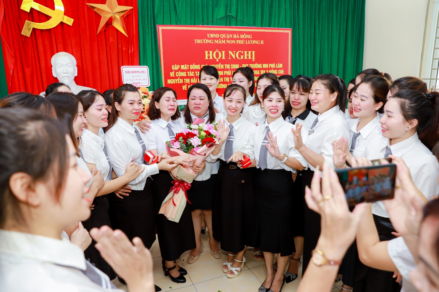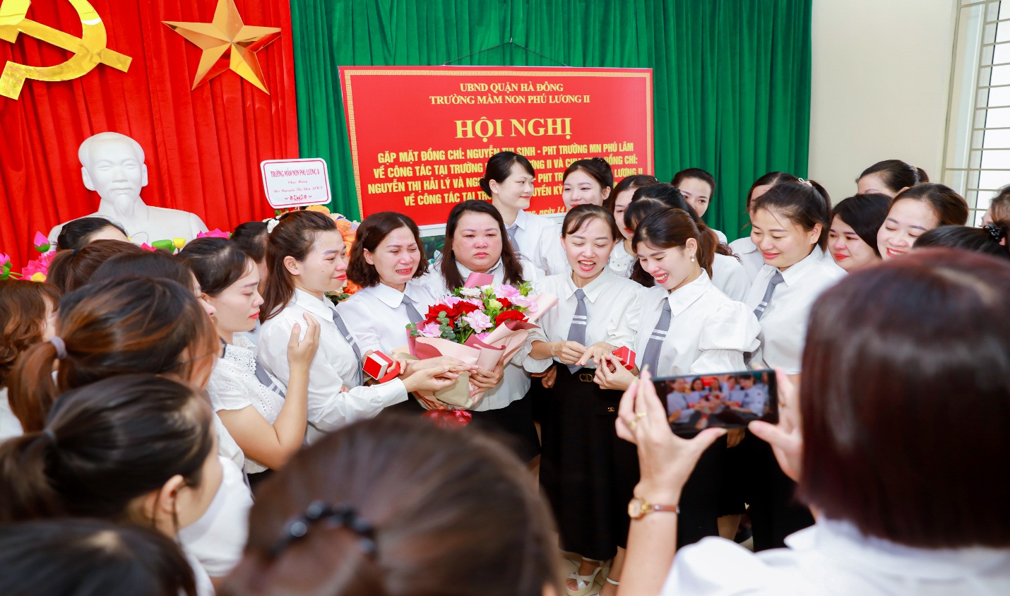 Thực hiện theo sự điều động cán bộ công chức, viên chức của UBND quận Hà Đông. Căn cứ Quyết định số: 2667/QĐ – UBND của UBND quận Hà Đông ngày 01/7/2024 điều động, bổ nhiệm đ/c: Nguyễn Thị Sinh, Phó hiệu trưởng, Trường MN Phú Lãm điều động về giữ chức vụ PHT trường MN Phú Lương II. Thay mặt BGH nhà trường vui mừng chào đón và tiếp nhận đ/c Nguyễn Thị Sinh, Phó hiệu trưởng về làm việc tại trường. Mong rằng đồng chí sẽ phát huy mặt mạnh của mình trong công tác quản lý về chăm sóc giáo dục trẻ và luôn luôn giữ mối đoàn kết nội bộ từ BGH, giữa các chị em đồng nghiệp luôn vui vẻ, thân thiện, hạnh phúc và đạt được niềm tin từ phụ huynh học sinh. ( Có hình ảnh kèm theo).