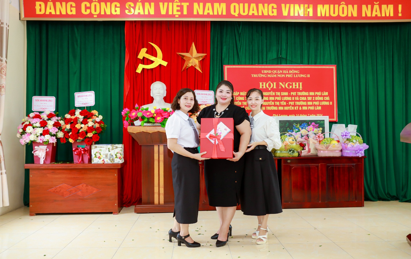 Vào sáng ngày 14 tháng 7 năm 2024 trong không khí đầm ấm, cởi mở, thắm tình Chị, em, đồng chí, đồng nghiệp và đầy trang trọng, ý nghĩa. BGH phối hợp cùng Công đoàn trường mầm non Phú Lương II long trọng tổ chức buổi gặp mặt và chia tay 2 đồng chí Nguyễn Thị Yến, Nguyễn Thị Hải Lý điều động công tác. Đây là một việc thể hiện nghĩa cử cao đẹp của tình Chị, em, đồng chí, đồng nghiệp giữa người đi và người ở lại mà 02 đ/c đã bao năm gắn bó như một ngôi nhà chung.