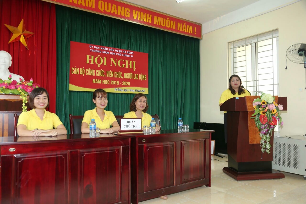 Nhằm phát huy quyền làm chủ , tạo điều kiên để CB, GV, NV được biết được tham gia ý kiến, được quyết định và giám sát những vấn đề có liên quan đến quyền lợi và nghĩa vụ của mình.Chiều 03/10/2019, Trường mầm non Phú Lương2 long trọng tổ chức hội nghị cán bộ công chức, viên chức năm học 2019-2020. Hội nghị nhằm phát huy quyền dân chủ trực tiếp của người lao động; tạo điều kiện để người lao động được biết, được tham gia ý kiến, được quyết định và giám sát các hoạt động chuyên môn, các phong trào của Nhà trường.