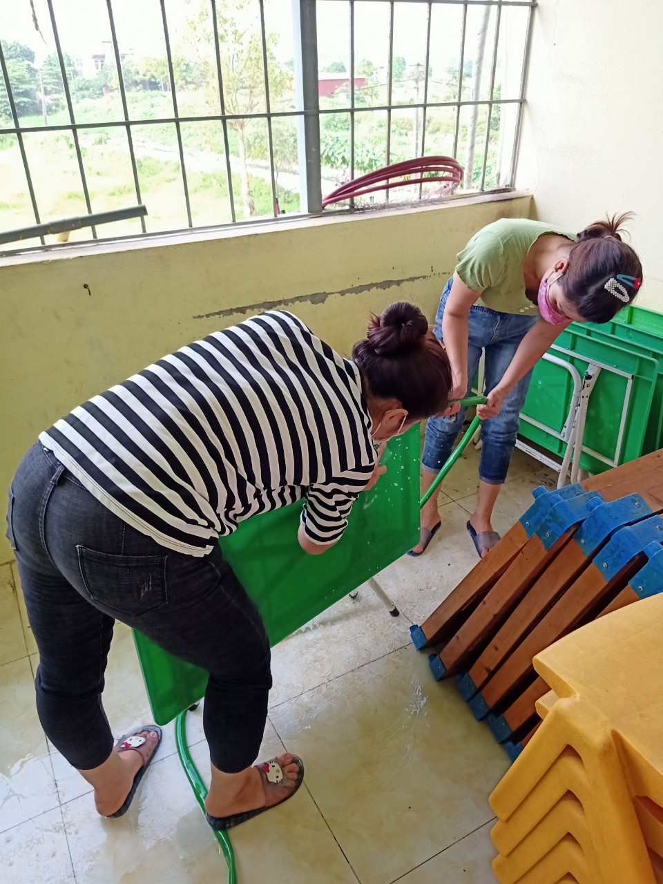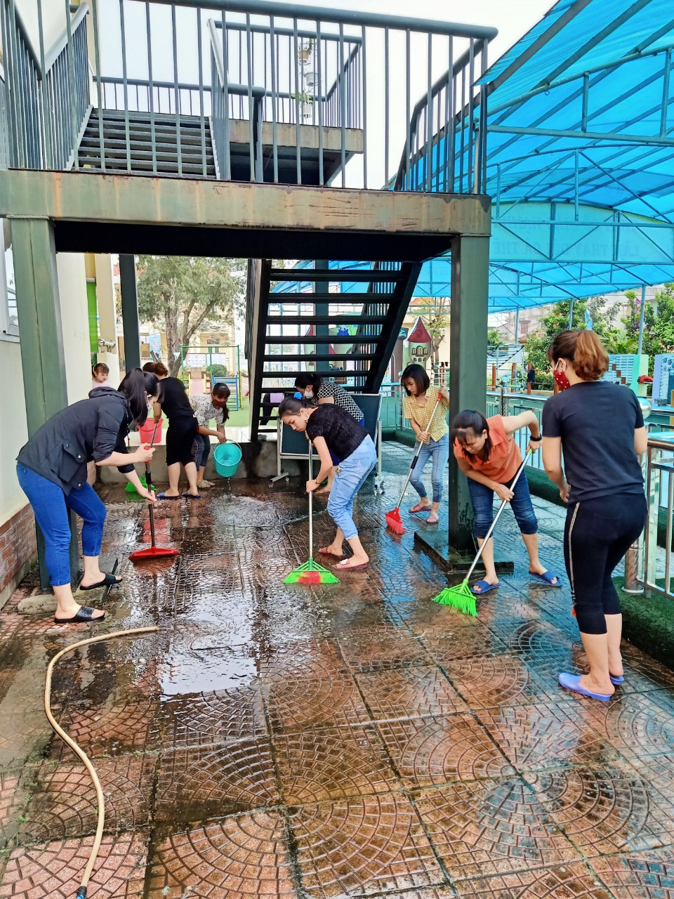 Cán bộ giáo viên nhân viên trong trường tổng vệ sinh toàn bộ trường, lớp học