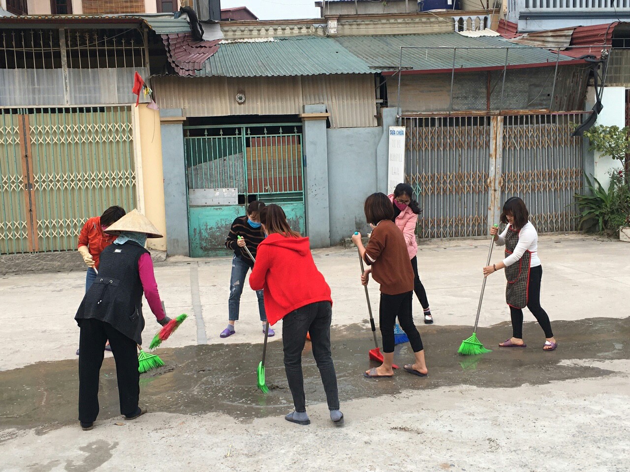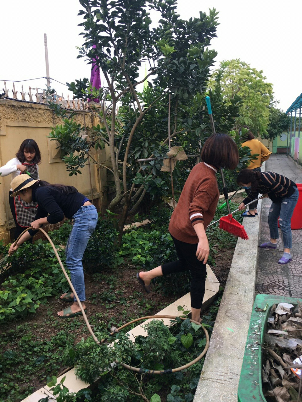 GVNV Tham gia tổng vệ sinh trong sân trường