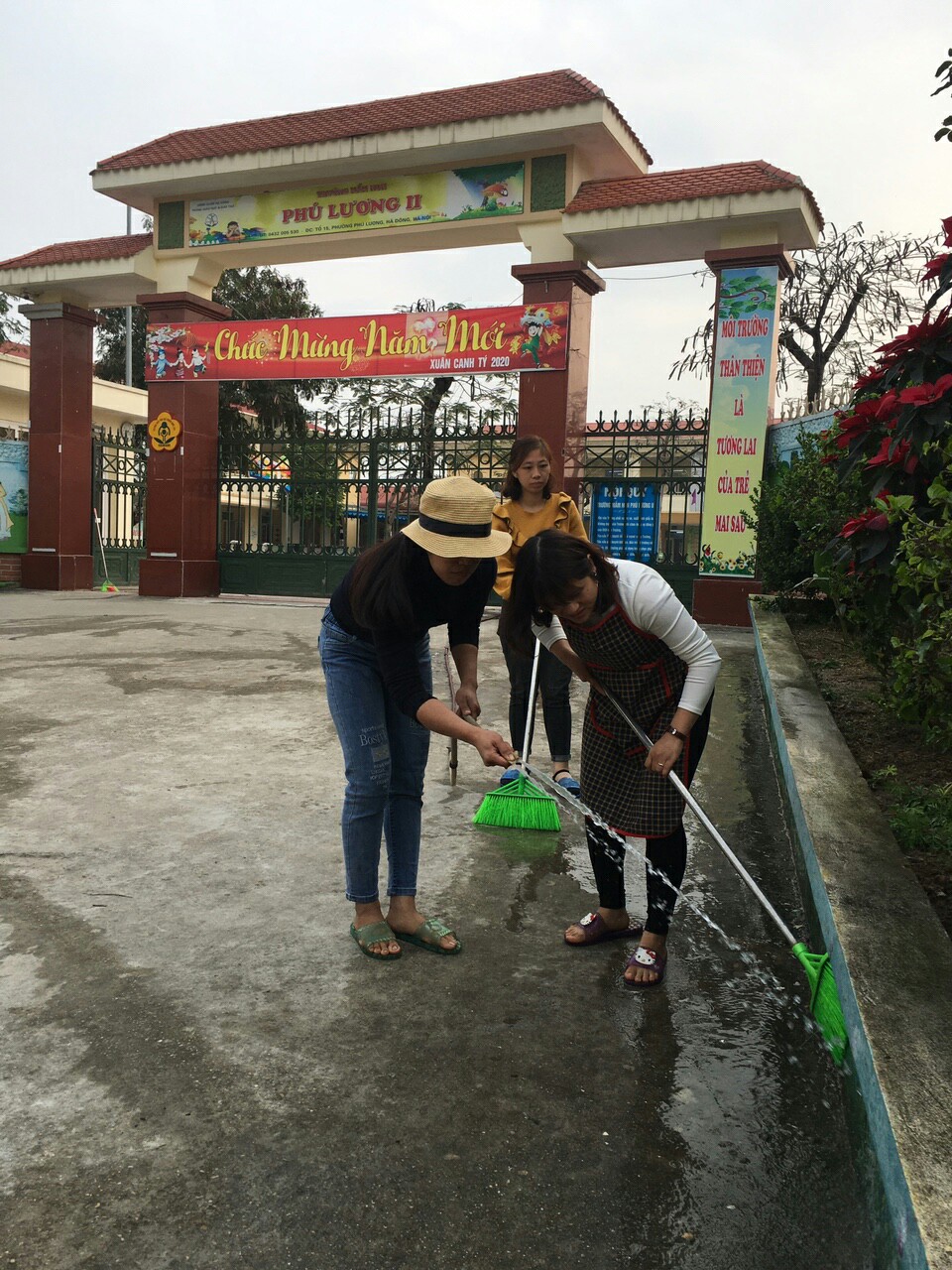 Chiều ngày 31/1/2020 và ngày 1/2/2020. Tập thể cán bộ giáo viên nhân viên trường Mầm non Phú Lương II đã ra quân tổng dọn vệ sinh toàn bộ khu vực trường, bao gồm: Họp hội đồng sư phạm quán triệt  công tác phòng chống dịch bệnh viêm đường hô hấp do chủng mới của viruts Corona . Sử dụng nước diệt khuẩn clominB để lau các giá tủ,  nền nhà,  cọ rửa đồ dùng đồ chơi. Hấp sấy khăn mặt, ca cốc uống nước của trẻ. Cọ rửa xốp trải nền.  sấy đồ dùng, dụng cụ nấu ăn. Rửa cầu thang, hành lang, các tay vịn cầu thang, đồ chơi sân trường. Quét dọn khu vực trong ngoài trường. Phun thuốc diệt trùng 100% các phòng ban, nhóm lớp, đồ chơi, khu vực xung quanh trường. Tuyên truyền, làm bảng tin thông báo công tác phòng chống dịch bệnh của viruts Corona cho phụ huynh và học sinh trong trường.